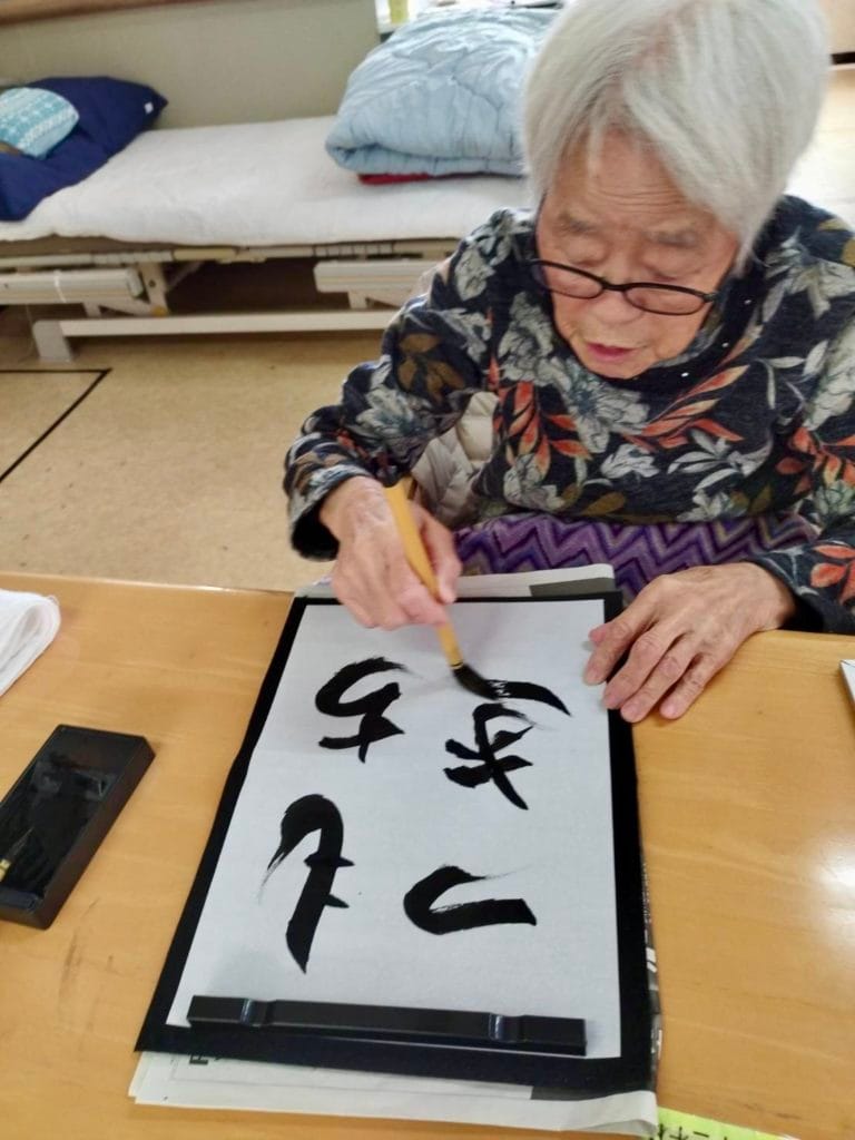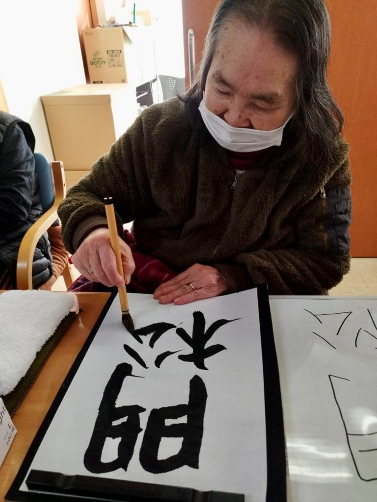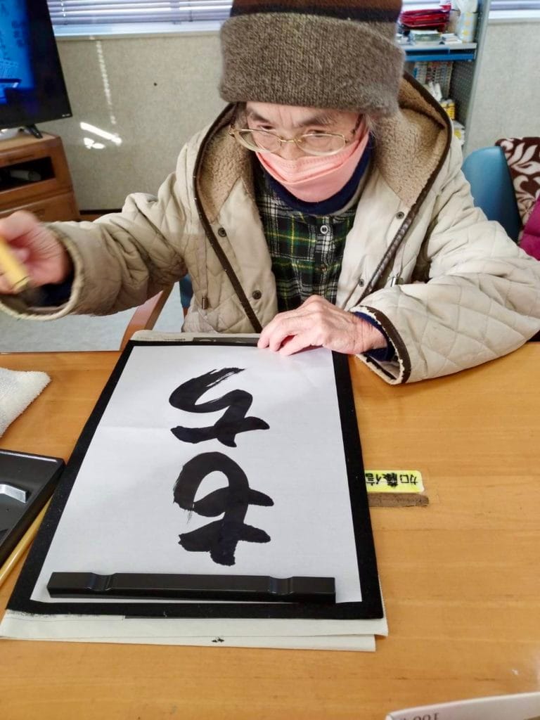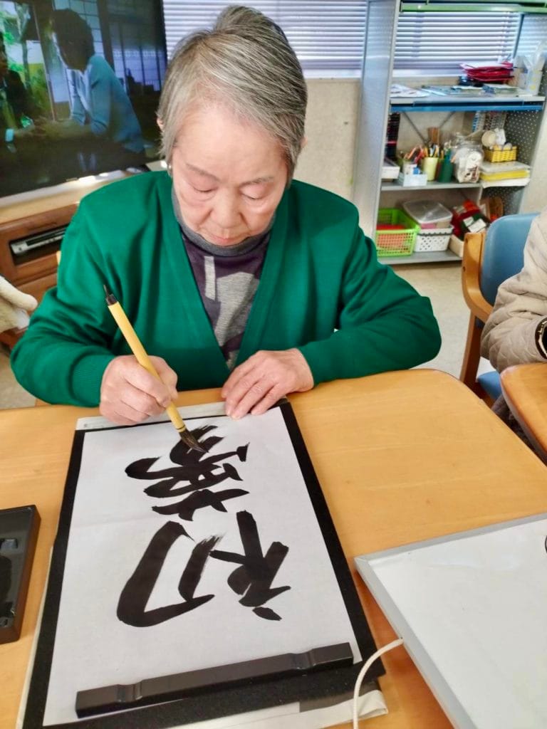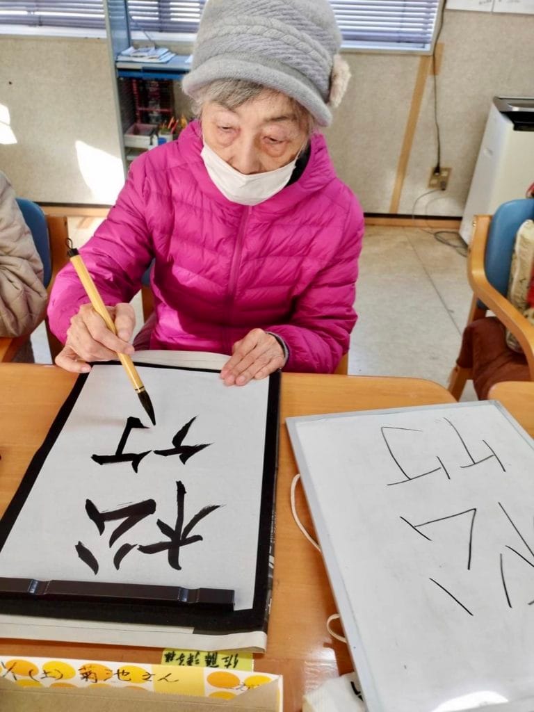 かなやまの里では、「12月にちなんだお習字」をやりました・!! | かなやまの里デイサービス