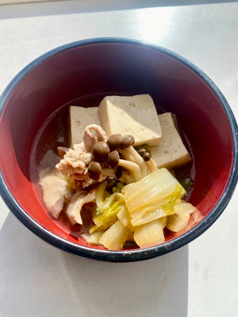 今日のお昼ご飯は、シェフ手作りの鍋「肉豆腐」ですよ〜🤗
